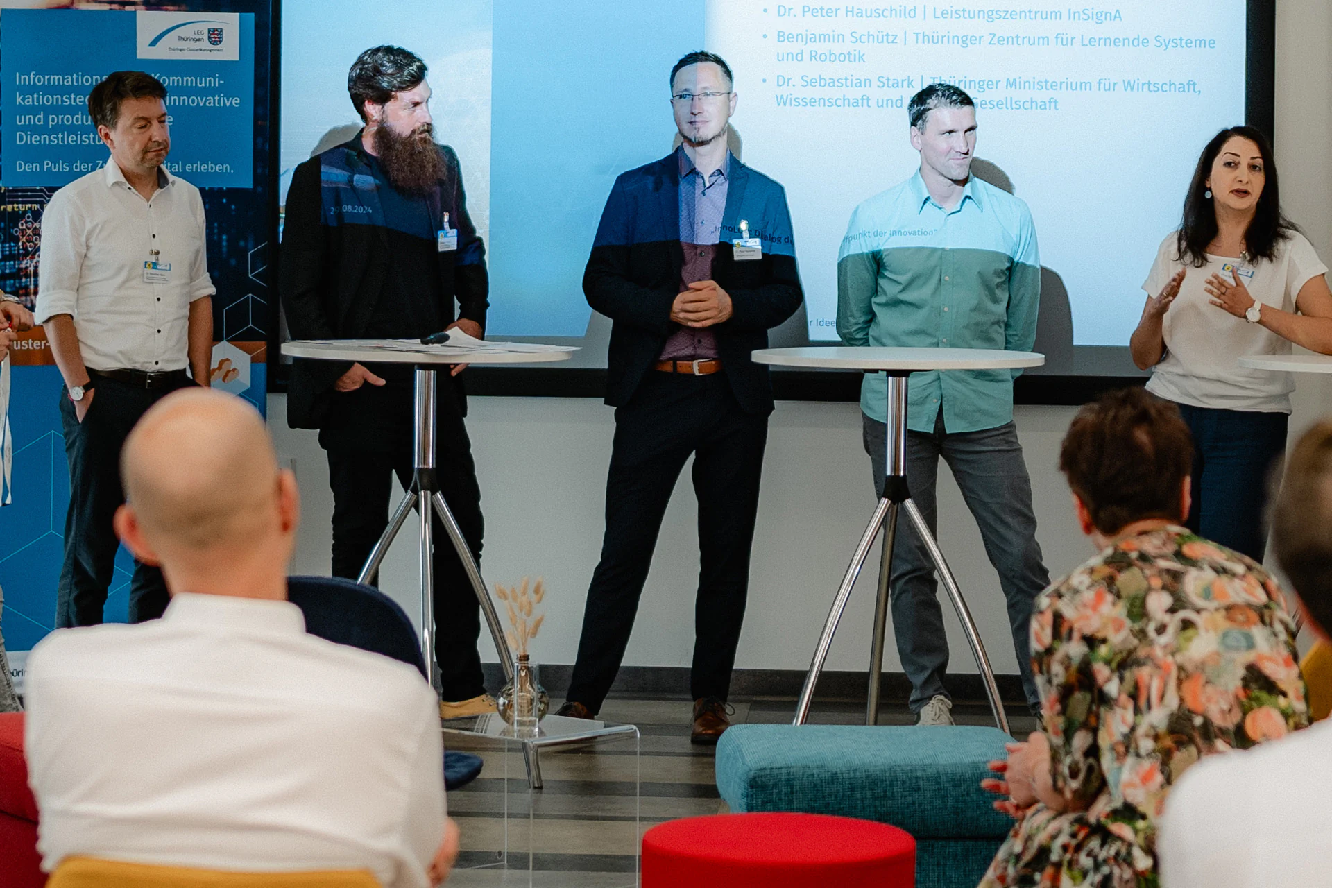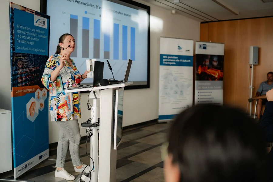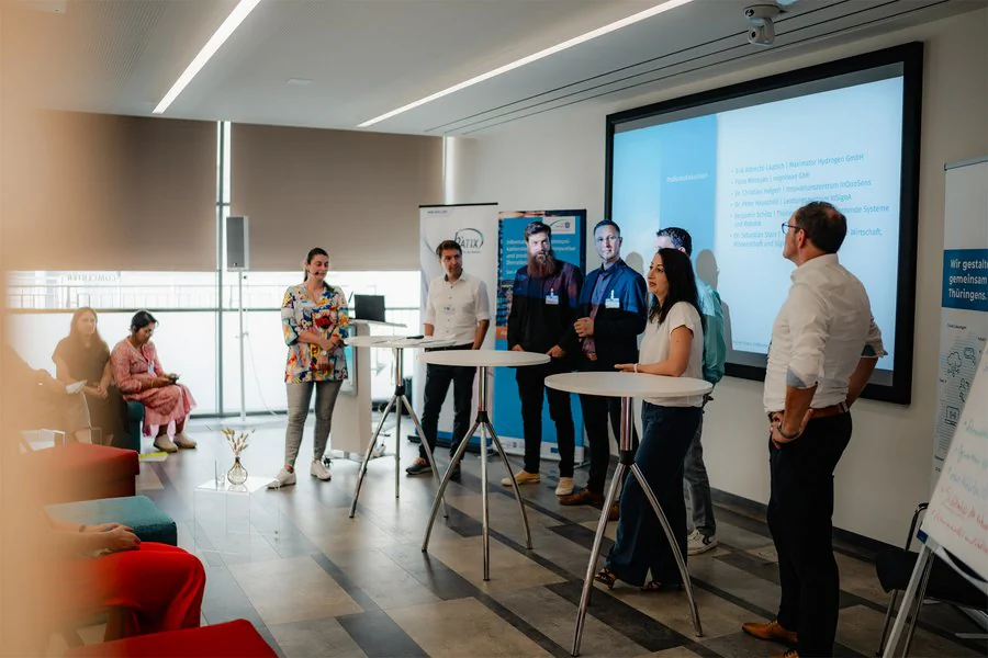 Das Thüringer Ministerium für Wirtschaft, Wissenschaft und Digitale Gesellschaft (TMWWDG) fördert Innovationsprojekte durch zahlreiche Fördermaßnahmen, die in dem Programm „Thüringen MOTIVation“ gebündelt sind. Sie unterstützen Unternehmen und Forschungseinrichtungen dabei, neue Produkte, Prozesse und Dienstleistungen zu entwickeln. Im Rahmen eines Workshops, wurde im speziellen die Thüringer FTI Thüringen PERSONEN Richtlinien vorgestellt. Hierbei unterstützt das TMWWDG KMUs, sowie Forschungseinrichtungen bei der Gewinnung, Entwicklung und Sicherung von hochqualifizierten Mitarbeitenden, insbesondere im MINT-Bereich (FTI-Thüringen PERSONEN - Thüringer Aufbaubank).